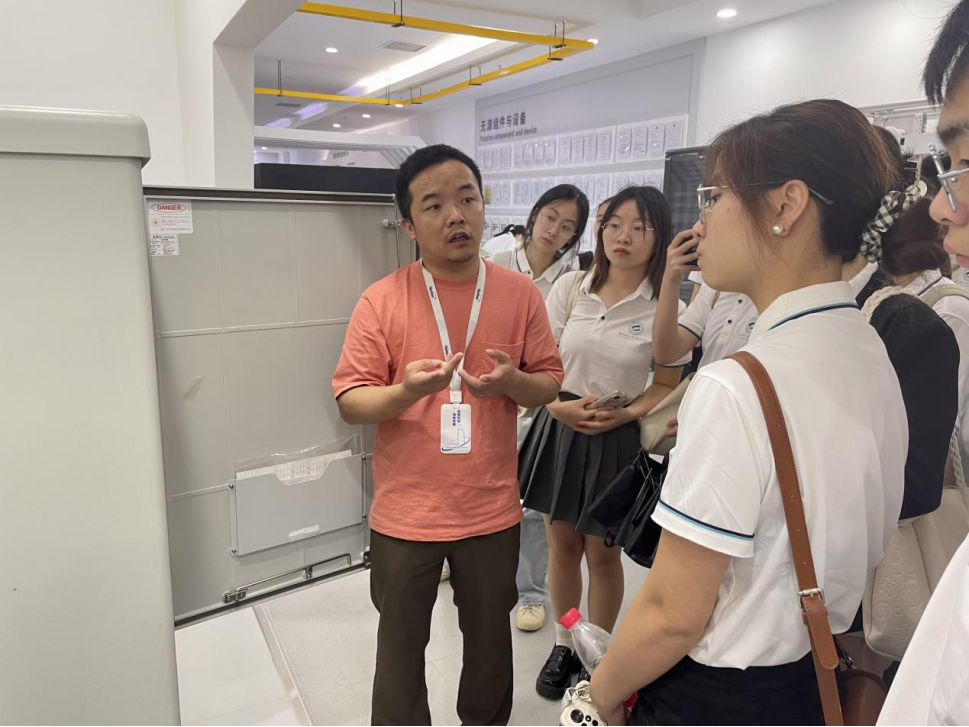 随后,实践团成员们前往参观烽火集团旗下通信产品、服务器和光纤光缆的生产基地。在工作人员细致讲解下,实践队成员体验了光纤、光棒、服务器等设备元件的加工制造全流程。在产品生产、装配、质检,和包装环节,随处可见机械臂、空中轨道、5G+AI质检机器等高度工业智能化场景和5G技术的广泛应用。实践队员袁坤表示:“通过走进企业,不仅能够近距离地了解行业发展和技术原理,还能切身体会到企业精益求精、不懈奋斗的精神,让我受益匪浅。”
