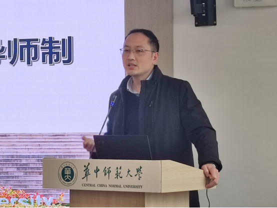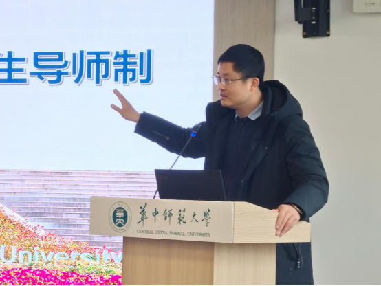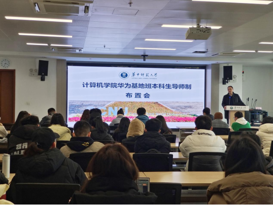 3月1日下午,华中师范大学—华为“智能基座”产教融合协同育人基地班本科生导师制工作布置会在南湖综合楼7119会议室召开。计算机学院党委副书记庄甲鹏,副院长谢伟,本科生辅导员董明月、宗佳敏、肖克,教学秘书黄梦蝶出席此次会议,2021级和2022级华为基地班全体学生参与本次会议。