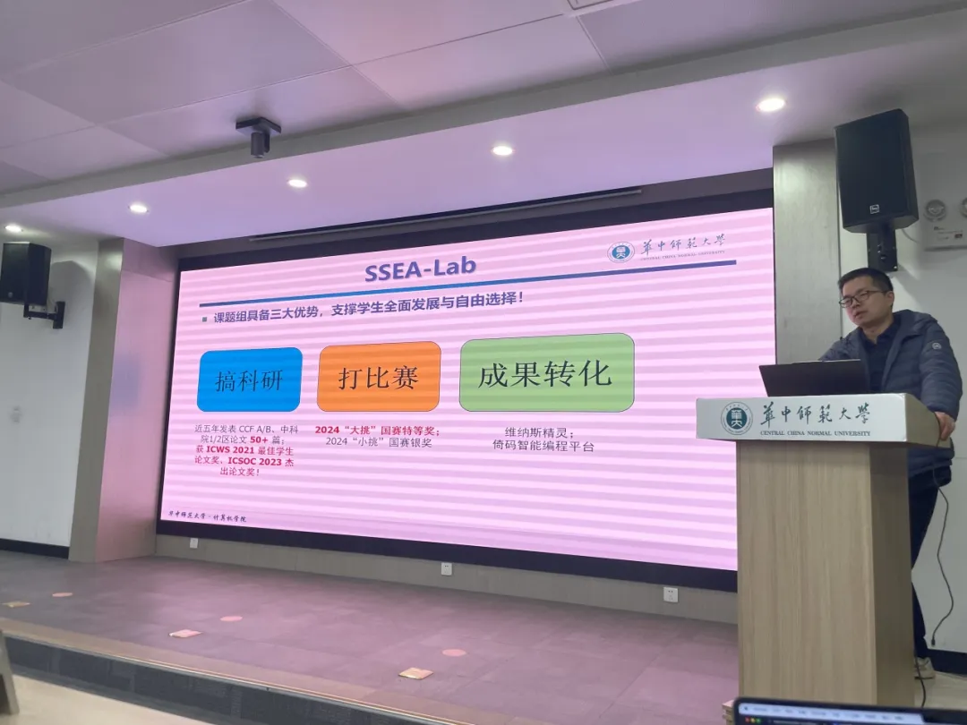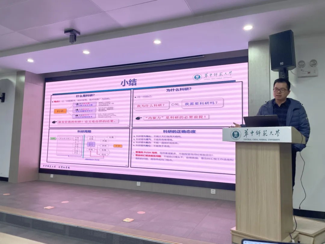 为激发学生科研探索的热情,提高同学们的科研能力。近期,华中师范大学计算机学院在南湖综合楼7119报告厅举办了本科生科研主题讲座,本次讲座特别邀请到了计算机学院副教授张能担任主讲人。2301班全体学生和2024级部分学生参与本次活动,活动由计算机学院教师赵玉琦主持。