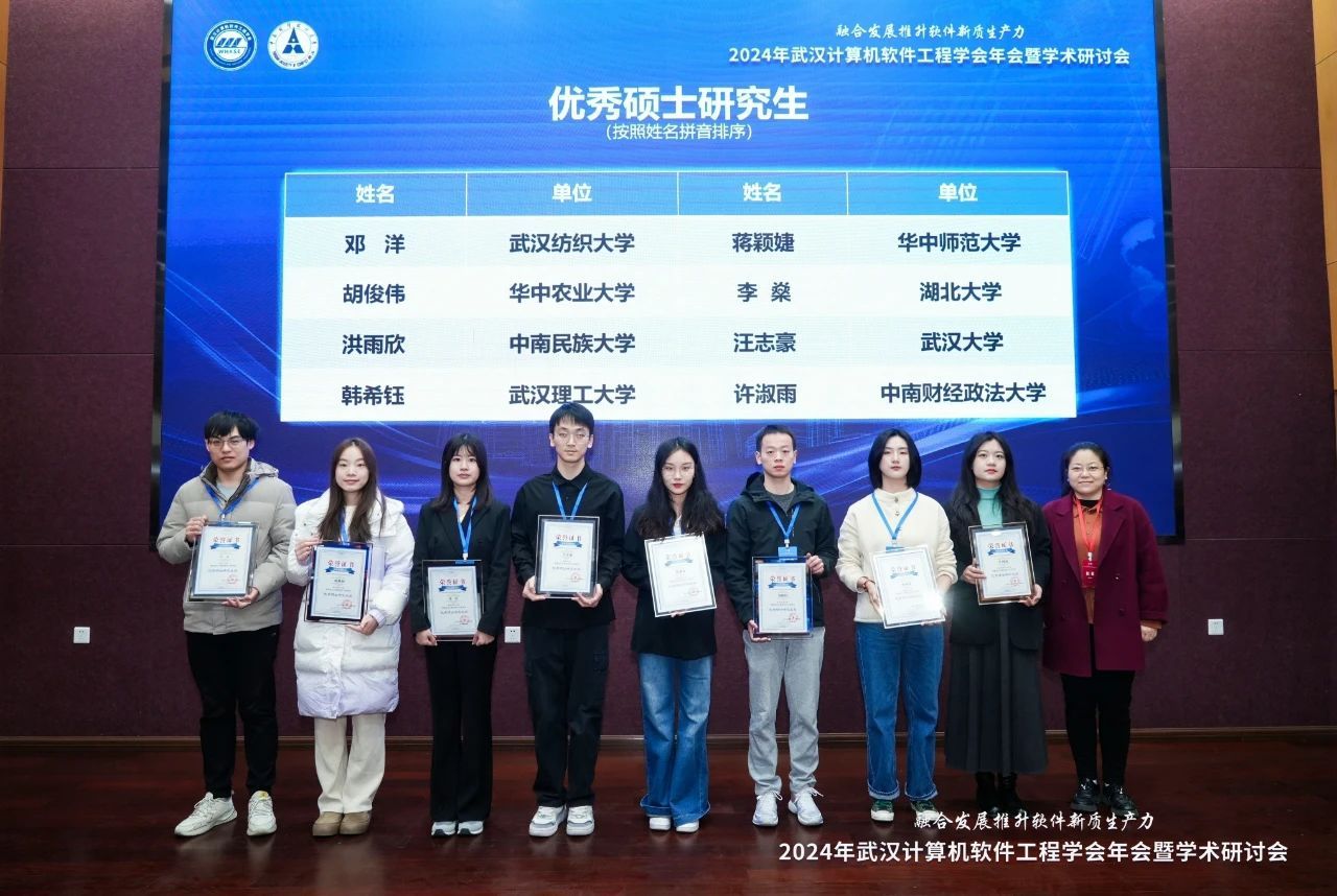 12月14日至15日,2024年武汉计算机软件工程学会年会暨学术研讨会在中南财经政法大学顺利召开。本次会议的召开旨在全面贯彻落实党的二十大精神,推动软件产业高质量发展,积极应对人工智能背景下的软件工程人才培养新挑战,全面提升拔尖创新人才与国家急需人才的培养能力。会上公布了2024年度表彰名单,我院师生在多项评选中脱颖而出,斩获多个重要奖项,展现了学院在人才培养、科学研究和社会服务方面的卓越实力。