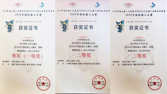 (通讯员 范梦宇)11月20日,由中国自动化学会与青岛市即墨区政府共同主办的2020年中国机器人大赛在青岛即墨创智中心体育场拉开帷幕。华中师范大学选派两组代表队参加舞蹈机器人双足人形项目,一组代表队参加舞蹈机器人多足异形项目。最终通过经过激烈的角逐,双足人形项目荣获得一等奖一项(全国第三)、二等奖一项(全国第四),多足异形项目荣获二等奖(全国第四)。