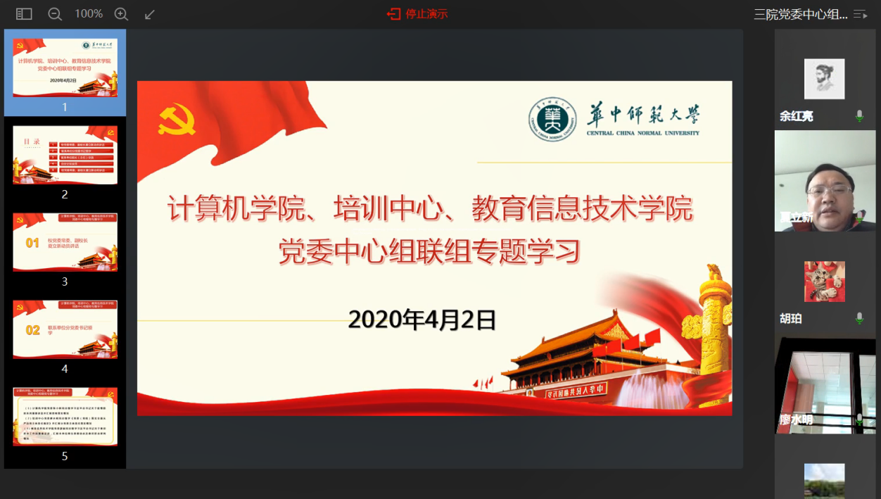 尔后,联系单位分党委书记分别进行了领学。计算机学院党委书记张小新领学了习近平总书记关于疫情防控系列重要讲话并汇报学院贯彻落实情况;培训中心党委书记廖水明领学《党委(党组)落实全面从严治党主体责任规定》并汇报中心党委主体责任落实情况;教育信息技术学院党委书记游丽领学习近平总书记关于意识形态工作的重要论述,汇报学院师生思想动态及意识形态研判情况。