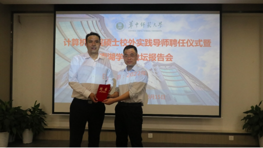 6月15日下午,计算机学院在7119会议室举行了硕士校外实践导师聘任仪式暨南湖学者论坛报告会。中国人工智能开源软件发展联盟副理事长,平安科技副总工程师、美国佛罗里达大学人工智能博士后、高级工程师王健宗总工应蒋兴鹏院长的邀请,受聘成为我院硕士校外实践导师,并为我院南湖学者论坛第三期带来了精彩的学术报告。会议由崔建群副院长主持。