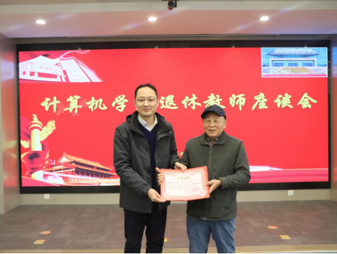 会议伊始,王坤书记、何婷婷教授等分别为胡金柱教授颁发武汉计算机软件工程学会终身学术成就奖,为程翔章、胡金柱老师颁发“先进老人奖”。与会人员对获奖退休教师表示热烈的祝贺。