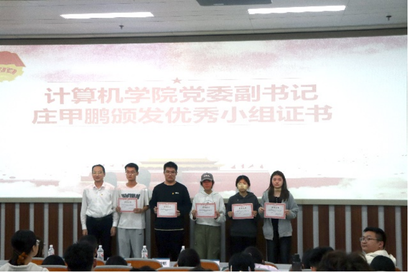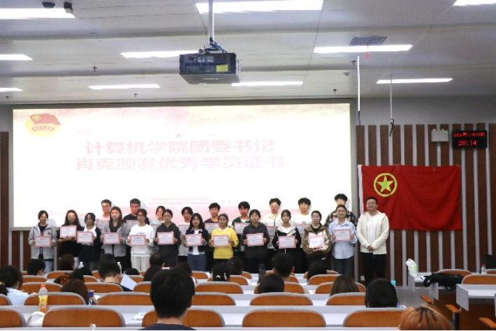 随后,信息管理学院马筱茜、计算机学院王安麒分别宣读了两院优秀学员、优秀小组名单,由王乐、肖克为优秀学员颁发证书,庄甲鹏为优秀小组颁发证书。