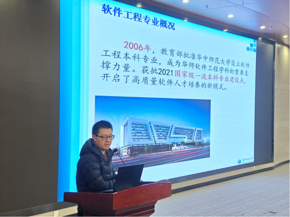 胡珀带领同学们全面了解了计算机科学与技术专业。他通过风趣生动的方式介绍了该专业的培养目标,并在此基础上讲解了核心课程、课程设计理念以及“产教融合、协同育人、以赛促学、以赛促教、以赛促创”的创新人才培养模式。在专业选择的部分,胡珀通过图示直观展示了计算机专业的就业方向和行业需求,鼓励同学们在专业分流中“择己所爱、择己所适、择己所能”。