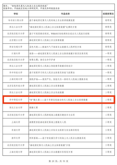 近日,第十九届“挑战杯”全国大学生课外学术科技作品竞赛2024年度“揭榜挂帅”专项赛终审决赛在北京航空航天大学、中国计量大学、浙江理工大学落下帷幕。由我院赵洲等老师指导、耿明强等同学为团队的参赛项目《“智”援之翼——基于多源信息融合的无人机海上自主探索救援》荣获国家级二等奖,实现了我院在该项赛事上的新突破。