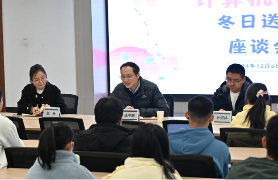 12月6日下午,计算机学院在7119会议室召开“冬日送暖”座谈会。院党委副书记庄甲鹏、本研新生辅导员赵丹、孙煜林以及本研新生代表共同参与座谈。
