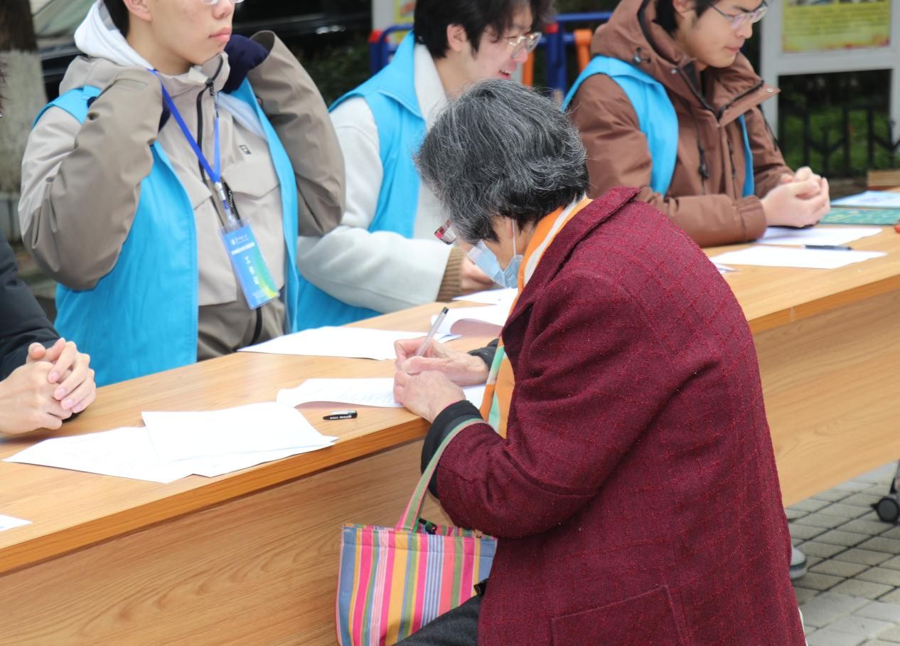 为了更深入地了解老年人的数字化困境,志愿者们还准备了电子版和纸质版的调查问卷,为后续实践活动提供参考,更好地满足服务对象的需求。对于一些读写不便的老人,志愿者们耐心细致地为他们解读,用通俗易懂的语言进行提问,帮助他们完成问卷填写。同时,为了激励更多居民参与问卷调查,志愿者们还为填写问卷的居民准备了精美的小礼品,有效提升了居民的参与积极性。