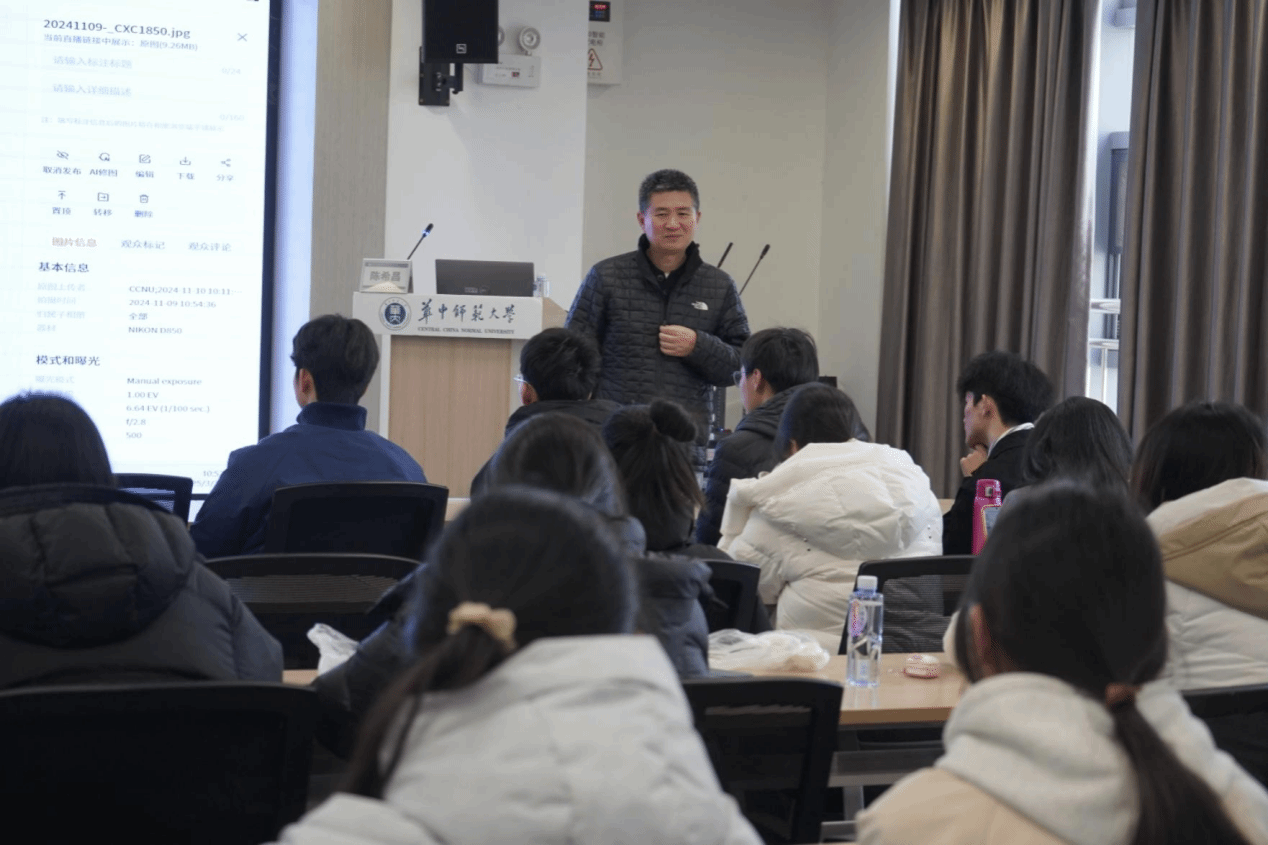 本次讲座内容系统而全面,不仅涵盖了基础构图、光影运用等入门知识,还深入讲解了情感表达、艺术创作等高级技巧。陈希昌结合华师的历史照片,引导同学们理解摄影的本质——用镜头捕捉平凡中的美好。他指出,好照片不仅依赖于环境、光线等客观因素,更需要拍摄者将情感和氛围融入画面,使观者能够直观感受到作品的艺术生命力。通过丰富的案例,陈希昌从”对比与呼应””倒影””节奏””光影”等多个维度,深入浅出地讲解了摄影语言的运用技巧,帮助同学们构建了摄影美学的认知框架。