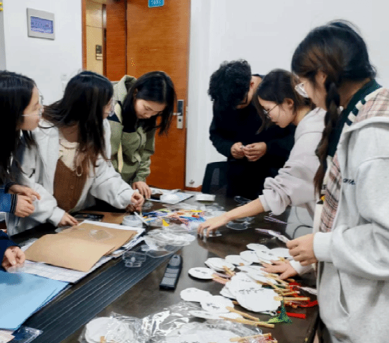 3月27日晚,工作人员在南湖综合楼7119教室为活动参与者发放压花透明书签、包装彩纸、丝带等创作物料,助力同学们开启“捡拾春意”的自然探索之旅。