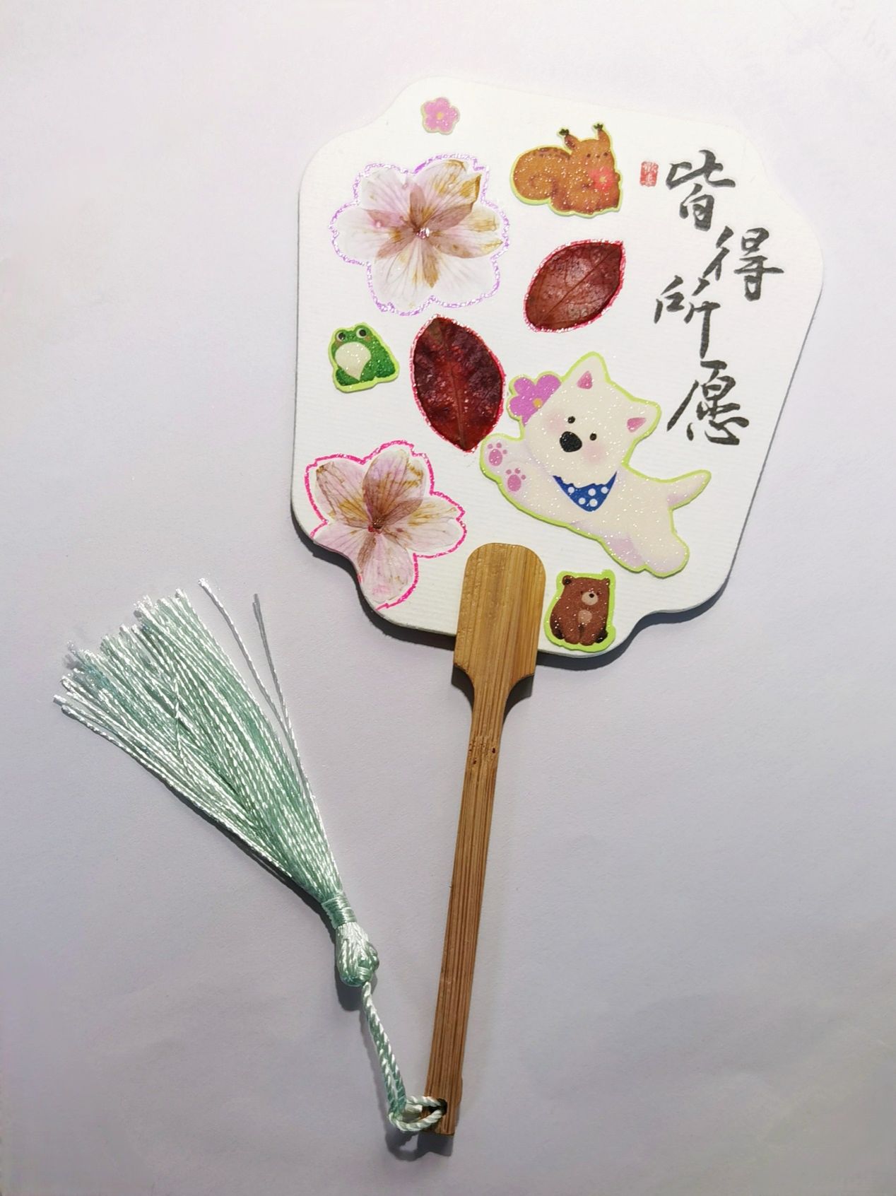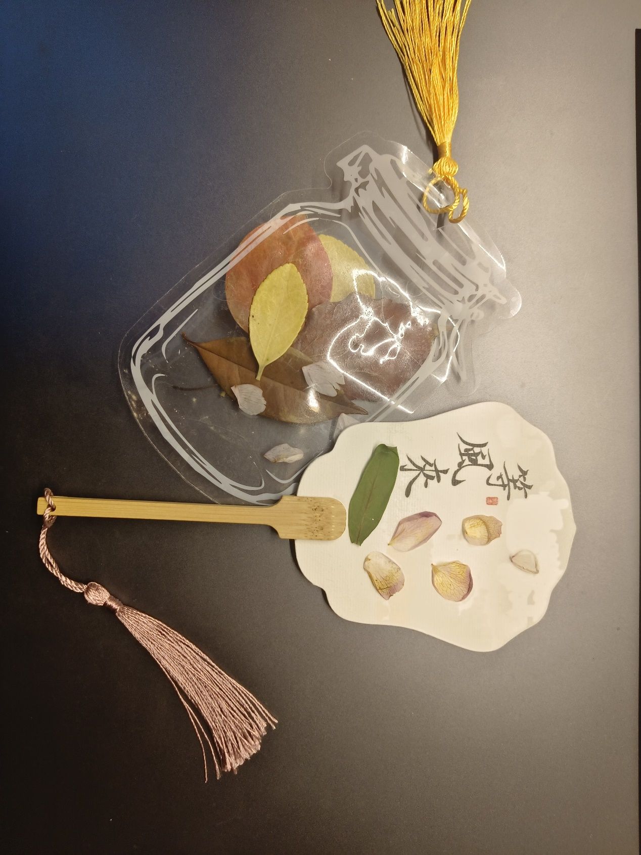 活动材料收集环节结束后,参会人员依托所获素材精心开展手工艺创作。本次活动累计产出129件创意手工艺品,涵盖植物标本类、手绘团扇类、自然拼贴类三大类作品。通过精细压制技法、传统笔墨与现代色彩融合工艺、剪裁拼接层叠复合手法等将零散素材重组。