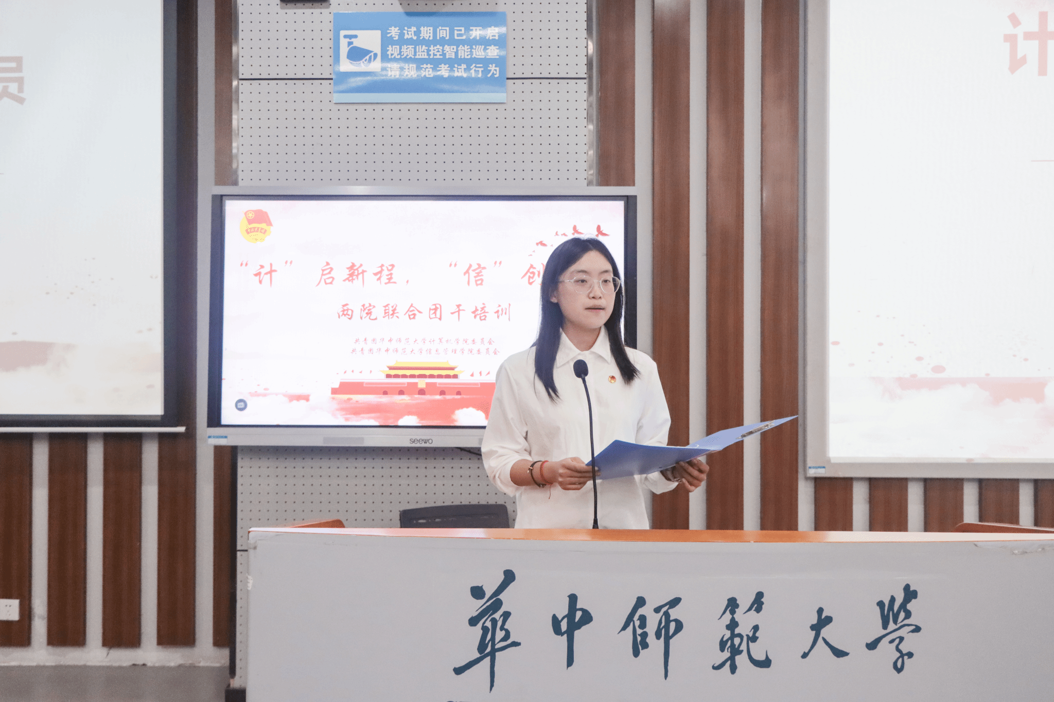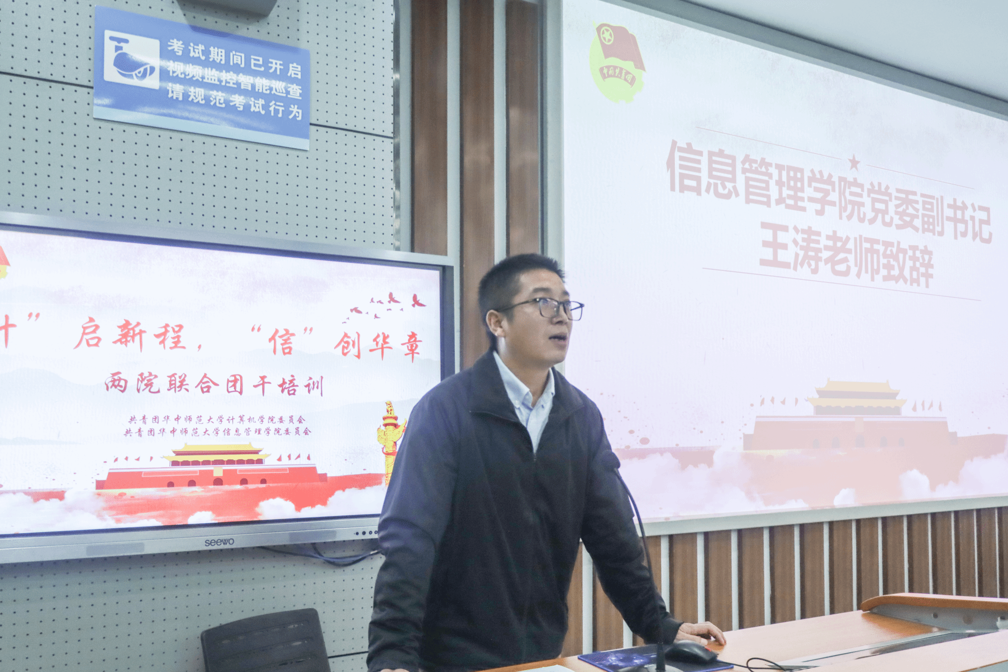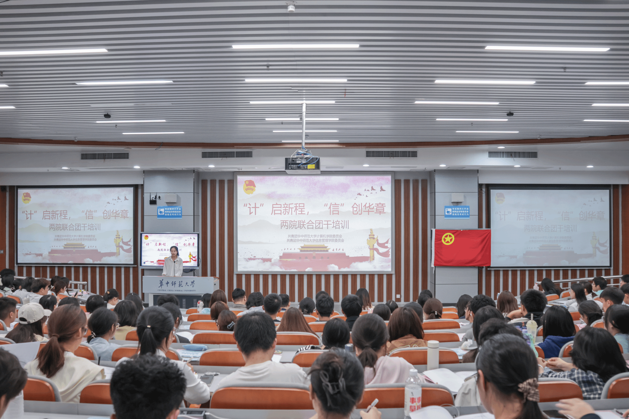 计算机学院记者团讯(通讯员 王玛茜 覃明凯 李心怡 蒋璋源 编辑 陈宇欣 陈雯潓 李逸飞)10月17日晚,计算机学院与信息管理学院联合举办的“‘计’启新程,‘信’创华章”团干培训开班典礼于南湖综合楼N107教室顺利举行。计算机学院党委副书记庄甲鹏、信息管理学院党委副书记王涛、计算机学院团委书记肖克、信息管理学院团委书记王乐出席典礼,两院2025级全体学生骨干参加。典礼由信息管理学院团委组织部黄佳丽主持。