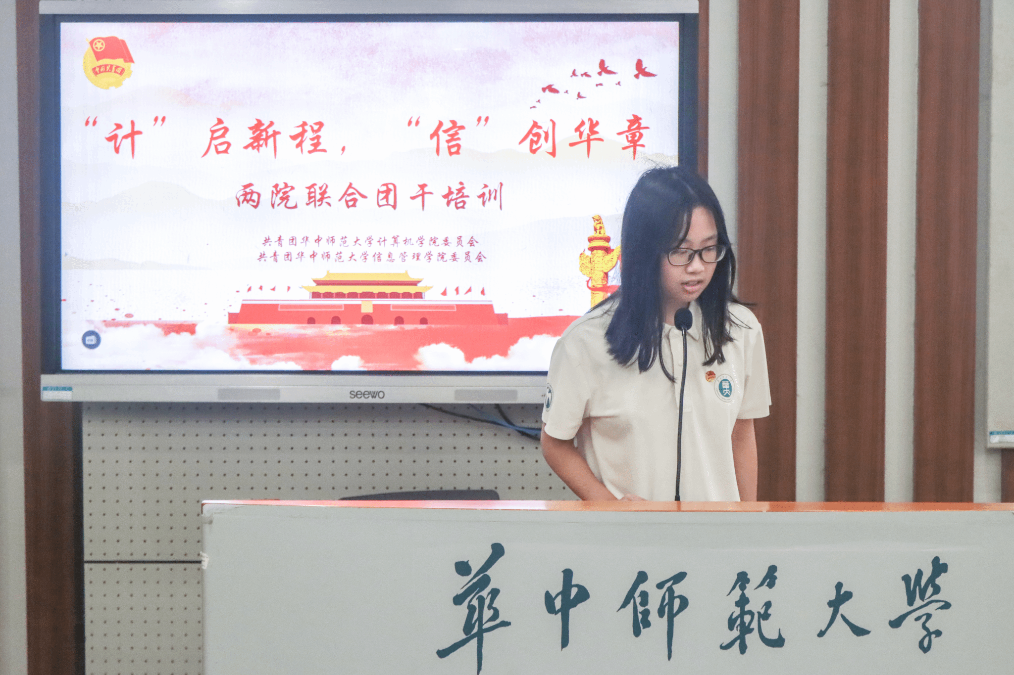 计算机学院2025级本科生程博越作为学生代表发言。她表示,团干培训是提升能力、深化认识的重要平台,承诺将以“空杯心态”积极学习,以“协作精神”互促共进,珍惜机会、不负期望。