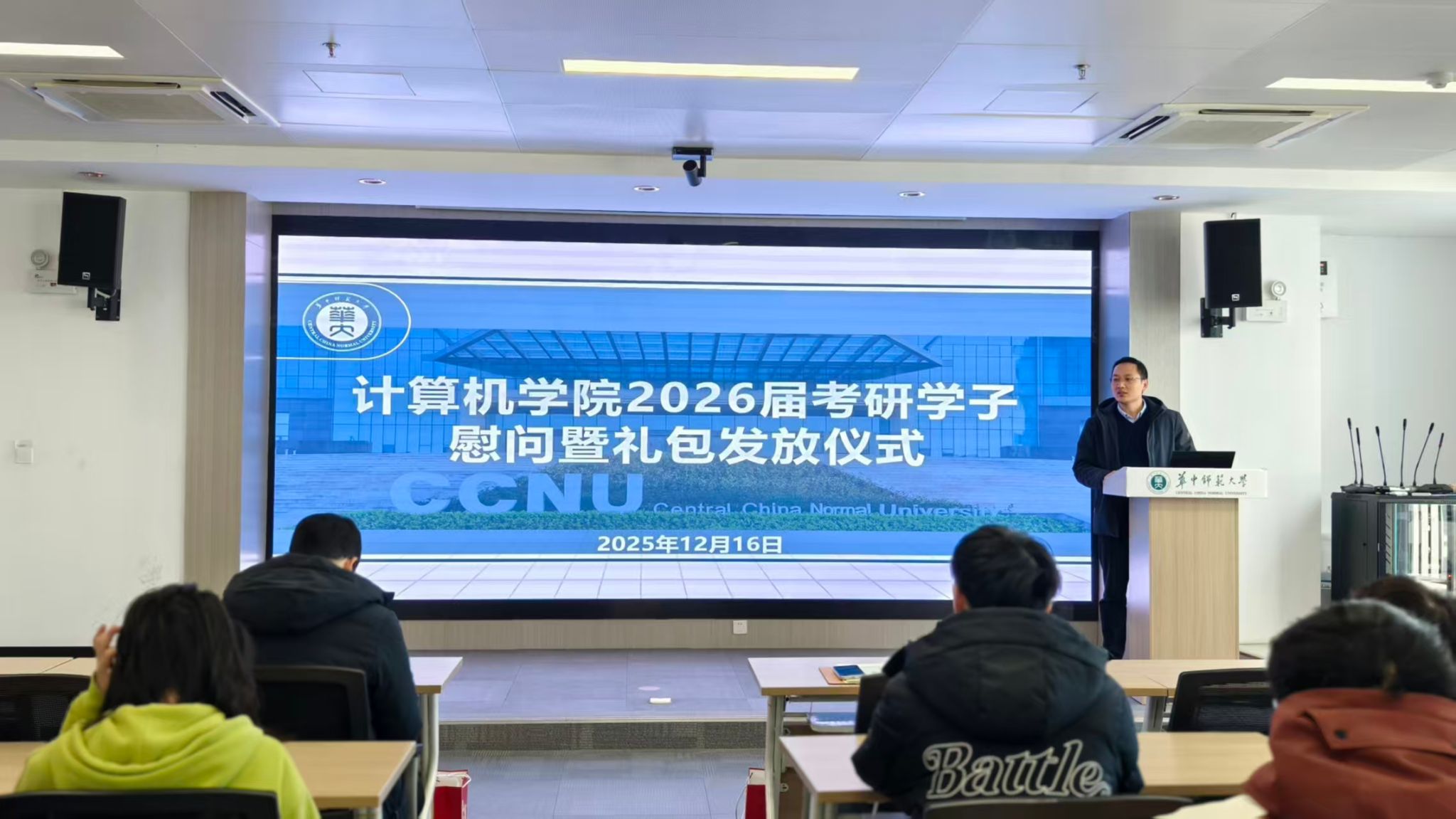 12月16日,计算机学院在南湖综合楼7119室举行2026届考研学子慰问活动。学院党委副书记庄甲鹏,副院长谢伟代表学院向考研学子表达慰问。2026届部分考研学子参加活动。年级辅导员宗佳敏主持。