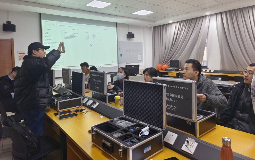2023年12月14日,计算机学院在南湖综合楼N537教室开展了智能穿戴实验箱培训。本次培训由我院物联网工程系系主任姚华雄老师组织,华清远见公司工程师受邀讲解智能穿戴实验箱的相关事项并进行实验设备操作培训。学院副院长谢伟出席了本次活动。蔡霞、陈怡、李蓉、刘巍、王赛、王敏、杨海彤、张连发、张猛、赵甫哲等教师,教学秘书黄梦蝶和物联网协会学生代表参与了本次培训。