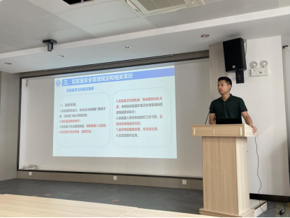 培训第一项,刘明副院长对实验室安全工作要求及意义进行总体说明,分别从学院实验室现状,实验室安全工作开展情况,实验室安全管理责任体系,以及学校针对实验室安全事故事件的追责问责方面进行说明。强调二级单位是本单位实验室安全的责任主体,要坚持“安全自查、隐患自除、责任自负”,落实落细我院三级联动的实验室安全管理责任体系,以确保安全责任逐级落实到岗位、落实到人、贯穿到各环节。同时,提醒老师们在开展教学、科研时,要进行科研项目的风险评估、安全审核,要对实验过程安全有教育培训、示范指导、监管提醒等责任意识并实质性落实。
