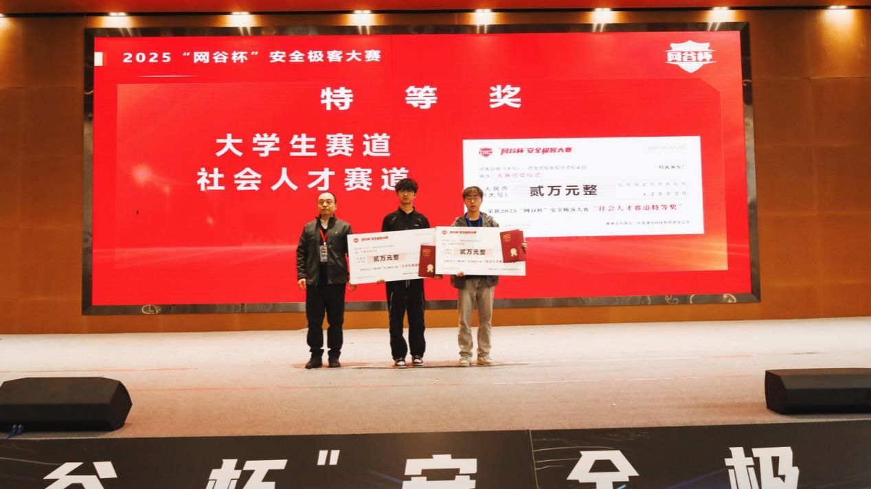 其中,孙洪于同学一举夺得社会赛道特等奖,并获得2万元奖金;王浩宇同学摘得该赛道二等奖及5千元奖金。两位同学均来自华中师范大学计算机学院信息安全专业,由陈嘉耕老师全程指导参赛。