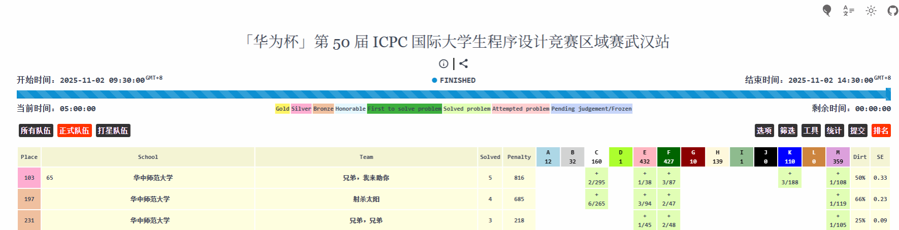 2025年下半年,第50届国际大学生程序设计竞赛(ICPC)与第11届中国大学生程序设计竞赛(CCPC)相继落幕,吸引了全国数百所高校的队伍同台竞技。华中师范大学ACM协会的队员们在这一赛季中延续拼搏精神,展现出优秀的编程素养、敏捷的创新思维与紧密的团队配合,最终收获4银、8铜的优异成绩。接下来 ,就随小猿一起回顾他们的竞赛风采与获奖全记录吧!