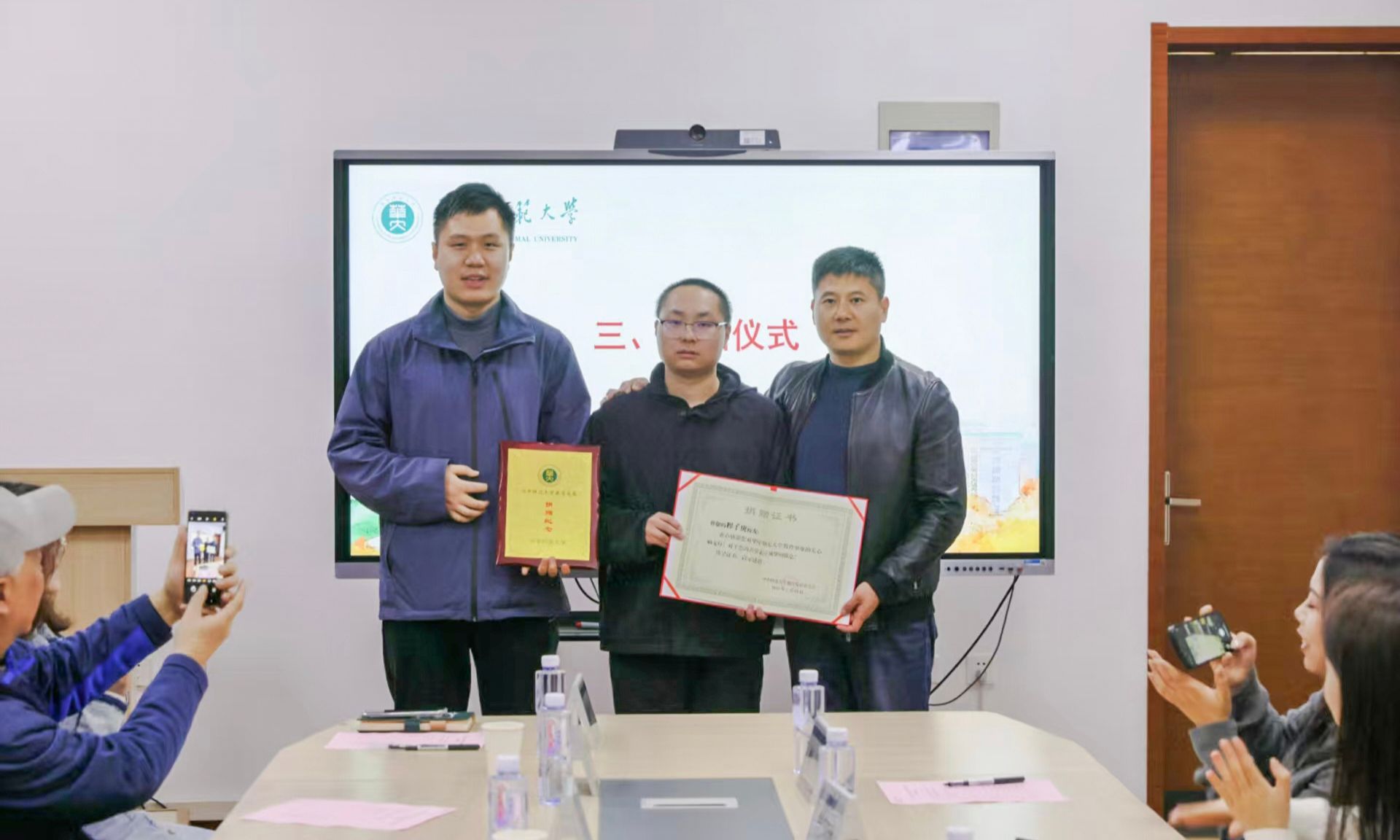 计算机学院党委书记王坤、教育发展基金会秘书贾世伟,共同为程子庚校友颁发了捐赠证书和纪念牌。